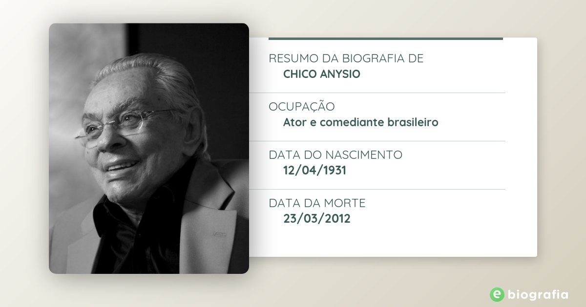 Em homenagem a chico anysio e os 5 anos de sua partida e em comemoração aos seus 86 anos, eis um presente para todos participação de chico anysio no comédia em pé em dezembro de 2007. Help us build our profile of chico anysio! Chico anysio, born francisco anysio de oliveira paula filho (born april 12, 1931 maranguape, ceará, brazil) is a brazilian actor, comedian, writer and composer. Francisco anysio de paula 12/4/1931 maranguape, ce 23/3/2012 rio de janeiro, rj. Cícero chaves, um dos filhos de chico anysio, morreu neste domingo (4).